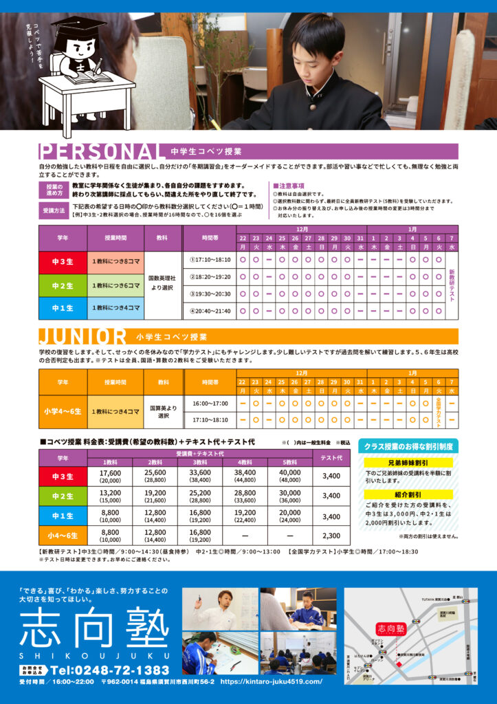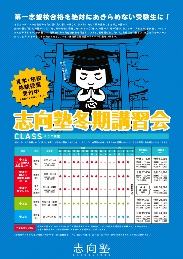志向塾では、冬期講習会を開催します。